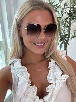 Billie Gold er store elegante solbriller, der kombinerer moderne stil og tidløs elegance. Disse oversize brune solbriller i guldfarvet brillestel giver et sofistikeret og moderiktigt udtryk. De firkantede linser i brune nuancer tilbyder perfekt beskyttelse og et ikonisk look. Brune guldsolbriller som Billie Gold passer perfekt til kvinder, der ønsker et varigt indtryk. Det lette brillestel i guld og de brune tonede linser skaber en chic kontrast, der løfter enhver stil. Disse solbriller er designet til dem, der værdsætter kvalitet og elegance.