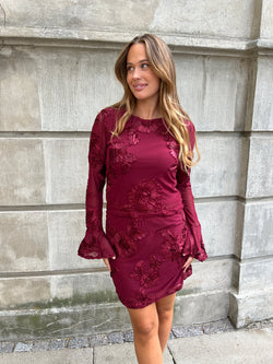 Smuk og feminin bluse . Blusen har fine detaljer som skaber et feminint og sofistikeret look. Perfekt til både hverdag og festlige lejligheder. Rund hals udskæring. Knappes i nakken, lange ærmer med flæser v. hånden. stretchy. understof, ikke gennemsigtig