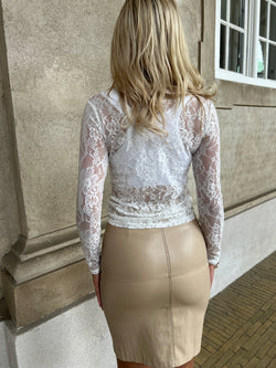 Smuk Hvid blonde bluse, v-udskæring og lange ærmer. Helt normal i str.