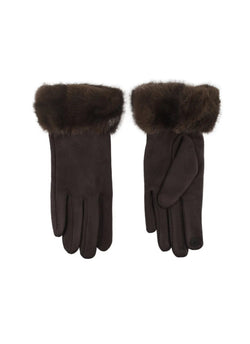 Beskrivelse: Tilføj et moderne touch til dit vinteroutfit med disse stilfulde handsker i vinterens musthave farve mørkebrun med fake fur. Bløde og varme